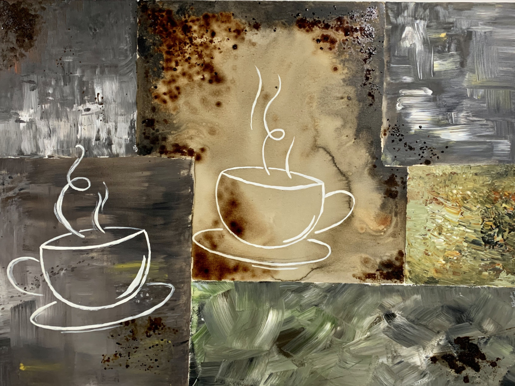 Coffee and Conversations, 30″x40″, Mixed media on Canvas, Sold