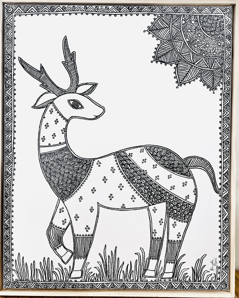 Mrig, Ink on Canvas, 16″x20″ Available, Price 350AUD
